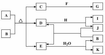 其中E为红棕色气体,F、H为金属单质,J为固态非金属单质。B与F反应时可生成C,也可生成G。