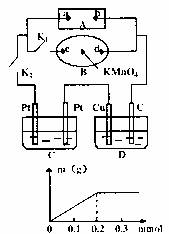 II.如下图所示,A为电源,B为浸透饱和食盐水和酚酞试液的滤纸,滤纸中央滴有一滴KMnO4溶液,C、D为电解槽,其电极材料及电解质溶液见图。