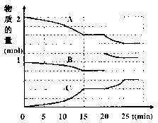(2)将2molA与1molB充入上述2L反应容器中,反应过程中A(g)、B(g)、C(g)物质的量变化如下图所示: