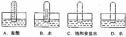 7.四支试管分别充满O2、NO2、C12、NH3四种气体,把它们分别倒立于盛有下列各种液体的水槽中,发生的现象如下图所示,其中充满C12的试管是 ( )