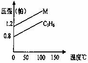 10.下图中的两条曲线分别代表的是:1gC3H6和1gM气体在相同体积的容器中,测得容器中的压强和温度的关系,试根据图形判