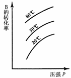 C达到平衡后,B的转化率与压强、温度的关系如下图所示。下列说法正确的是