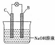 (6)将B、C的两种单质(呈片状),用导线连接后插入NaOH溶液(如下图所示)。