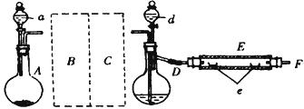 26.实验室用下图所示的装置制取溴化亚铁。其中,A为CO2发生装置,D和d中均盛有液溴,E为外套电炉丝的不锈钢管,e是两只耐高温的瓷夹,其中共盛有56g细铁粉。实验开始时先将铁粉加热至600-700℃,然后将干燥、纯净的CO2气流通入D中,E管中的物质开始反应,不断地将d中的液溴滴入100-120℃的D中,经过几小时的连续反应后在不锈钢管一端沉积有黄绿色鳞片状溴化亚铁80g。