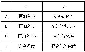 9. 在一密闭容器中通入A、B两种气体,一定条件下发生如下反应:2A(g)+B(g) 2C(g);△H<0。达到平衡后,只改变一个条件(X),下列量(Y)的变化一定符合图中曲线的是 ( )