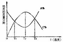cC(g),物质的质量分数A%和C%随温度的变化曲线如图所示,下列说法正确的是 ( )