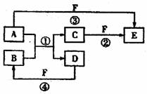 (2)若A是常见的金属单质,D、F是气态单质,反应①在水溶液中进行,则反应②(在水溶液中进行)的离子方程式是 。