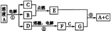 23. A、B、C、D、E、F、G是由短周期元素组成的七种物质,其中B、C、F是单质;常温下B、C、E为气体;A物质的焰色反应呈黄色。(下图中反应②的部分产物未表示出来。)