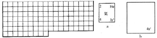 (2)元素甲是第四周期IA族元素,请在图b方框中按氦元素(图a)的式样,写出元素甲的原子序数、元素符号、元素名称和相对原子质量。(4分)