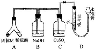28.(21分)某课外兴趣小组为了探究铁与硫在隔绝空气的条件下反应所得固体M的成分,设计了如下图装置。倾斜A装置使稀硫酸(足量)与固体M充分反应,待反应停止后,装置增重,C装置中溶液无变化,反应后进入量气管气体的体积为VmL(已折算成标准状况)由上述实验事实可知: