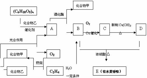 已知A含6个C原子,B、C、D都含2个C原子。A在酒化酶作用下发生的反应中,分子个数关系为:A -→ 2B + 2甲