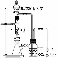 22.(10分)某化学课外小组用下图装置制取溴苯并探究该反应的类型。先向分液漏斗中加入苯和液溴,再将混合液滴入反应器A(A下端活塞关闭)中。