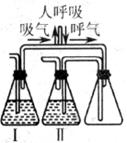 14.人体吸入空气,排出二氧化碳等气体,为了证明人体呼出的气体中含有二氧化碳气体且不是来自于空气,某学校化学课外小组设计了如下图所示的实验装置。为了除去空气中的二氧化碳气体和检验人体呼出的气体中含有的二氧化碳,锥形瓶Ⅰ和Ⅱ中加入的试剂依次为
