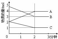 29.(6分)在容积为2L的密闭容器中,某反应在0-2分钟进行反应的过程中,在不同反应时间,各物质的量的变化情况如图所示(A、B、C均为气态物质)。