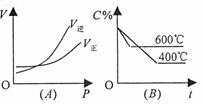 18.下图中C%表示某反应物在体系中的百分含量,v表示反应速率,P表示压强,t表示反应时间。图(A)为温度一定时,压强与反应速率的关系曲线;图(B)为压强一定时,C%与温度的关系曲线。同时符合以上两个图像的反应是( )