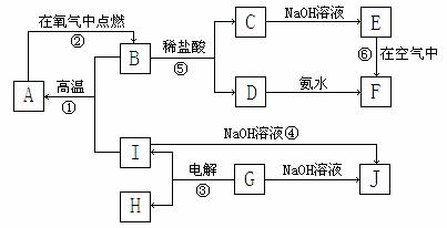 21.(12分)A-I分别表示中学化学中常见的一种物质,它们之间相互关系如下图所示(部分反应物、生成物没有列出),且已知G为主族元素的固态氧化物,A、B、C、D、E、F六种物质中均含同一种元素。