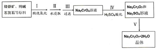 红钒钠(重铬酸钠:Na2Cr2O7·2H2O,橙红色晶体)是重要的化工原料。工业铬铁矿(FeO·Cr2O3,含少量Al2O3和SiO2)按以下过程来制取红钒钠。