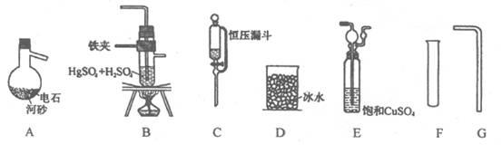 (2) 用下列仪器及导管(除G以外,短导管均已略去)以电石为原料制乙醛,若气体流