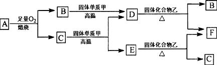 (5)若F与C在一定条件下还可以生成固体乙和气体E,请写出该反应的化学方程式 。