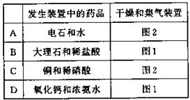 4.下图是实验室制取气体的装置,其中发生装置相同,干燥和集气装置有二套,分别用图1和图2表示。下列选项中正确的是 ( )