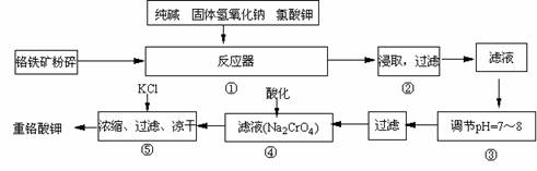 (1)在反应器①中,有Na2CrO4生成,同时Fe2O3转变为NaFeO2,杂质SiO2、Al2O3与纯碱反应转变为可溶性盐,写出氧化铝与碳酸钠反应的化学方程式: