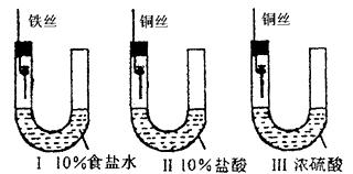 8.为研究金属腐蚀的条件和速率,某课外小组学生用金属丝将三根大小相同的铁钉分别固