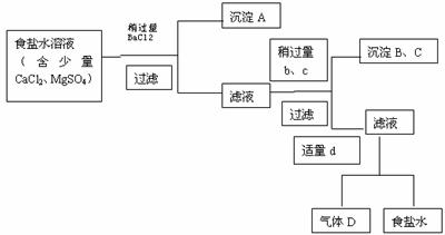 的粗食盐水,在除去悬浮物和泥沙之后,要用4种试剂①盐酸、②