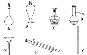 (三)、海带等藻类物质经过处理后,可以得到碘水,欲从碘水中提取碘,需要上述仪器中的 (填字母),该仪器名称为 ,向该碘水中加入四氯化碳以提取碘单质的实验操作称为 。