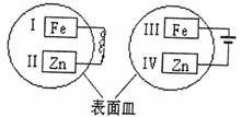 20.把锌片和铁片放在有稀食盐水的酚酞溶液的表面皿中,如下图所示经过一段时间后,最先观察到变红的区域是 ( )
