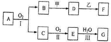 21.(15分)物质的转化关系如下图所示(有的反应可能在水溶液中进行)。其中A为化合物,甲可由两种单质直接化合得到,乙为金属单质,G为酸,乙在G的浓溶液中发生钝化。