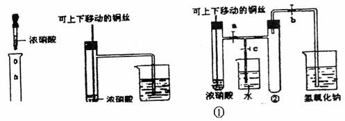 (3)(2分)为了进一步验证NO2和水的反应,某学生设计了丙装置,做实验时先关闭弹簧夹 ,再打开弹簧夹a和 ,才能使NO2气体充满②试管。