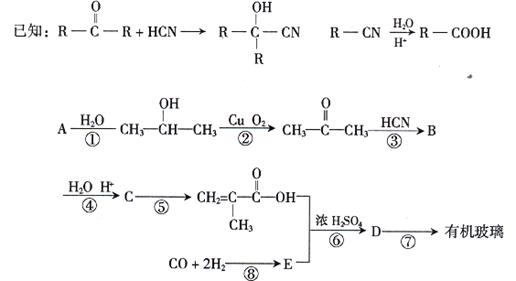 19、(15分)石油与煤既是主要能源,又是获取各种化工原料的基础物质。下列是合成高分子有机玻璃的化工流程。A为石油裂解产物之一,CO、H2是来自煤的气化产物。