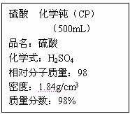 11.下图是某学校实验室从化学试剂商店买回的硫酸试剂标签上的部分内容。据此下列说法正确的是 ( )