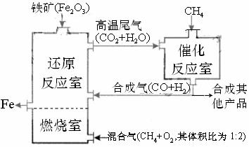 14.竖炉冶铁工艺流程如图,使天然气产生部分氧化,并在特殊的燃烧器中使氧气和天然气燃烧CH4(g)+2O2(g)=CO2(g)+2H2O(g),催化反应室发生的反应为:CH4(g)+H2O(g)