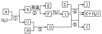 17.(8分)下图所示各物质是由1-20号元素中部分元素组成的单质或其化合物,图中部分反应条件未列出。已知C、H是无色有刺激性气味的气体,D是一种黄绿色的气体单质,物质J可用于饮水消毒。反应②和④是化工生产中的重要反应,反应⑤是实验室制备气体C的重要方法。