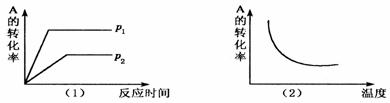 x C(g);△H = ?,在不同温度及压强(p1, p2)条件下,反应物A的转化率如图所示,下列判断正确的是 ( )![]()