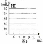 (4)反应达到平衡后,第8分钟时,若反容器的容积扩大一倍,请在图3中画出8分钟后HI浓度的变化情况。