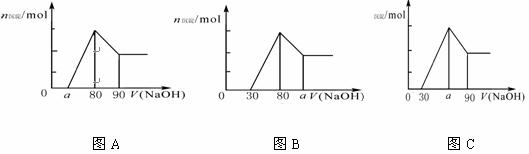HCl溶液里,待合金完全溶解后,往溶液里加入1mol/L NaOH溶液,生成沉淀的物质的量随加入NaOH溶液体积变化的关系如下图A所示。下列说法中不正确的是