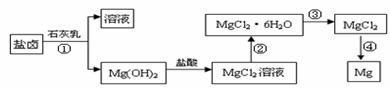 Ⅱ、镁及其合金是一种用途很广的金属材料,目前世界上60%的镁是从海水中提取的。某学校课外兴趣小组从海水晒盐后的盐卤(主要含Na+、Mg2+、Cl-、Br-等)中模拟工业生产来提取镁,主要过程如下: