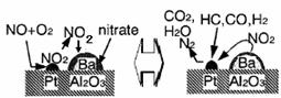 18.2007年诺贝尔化学奖授予德国化学家Gerhard Ertl,以表彰他在表面化学领域研究所取得的开拓性成就。某反应在Pd/Al2O3/Ba催化剂表面吸附与解吸作用的机理如下图所示(图中HC表示碳氢化合物,nitrate指硝酸盐),该机理研究是指 ( )