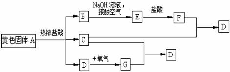 22.(共9分)物质A、D及F的水溶液均呈黄色,D是单质,F的溶液遇苯酚显紫色,A是一种重要工业生产中的主要原料。且A、C、D均含有某一非金属元素,C的相对分子质量与过氧化氢的相对分子质量相等。反应过程中生成的水等与转化无关的物质已经略去。这些物质有以下转化关系。试回答以下问题: