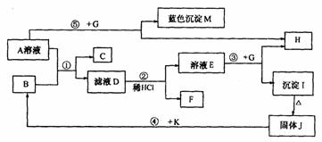 26.( 8 分)已知A 是一种常见的盐,B 、C 、K 为常见金属,K 的氧化物是耐火材料,且能溶于碱溶液。G 为淡黄色固体,H 、F 为无色气体,F 在空气中会变成红棕色。它们的转化关系如下图所示(个别产物略去)。