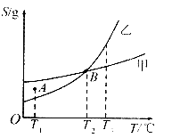 A.A点表示T1℃时甲的溶液已饱和.乙的溶液未饱和