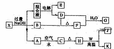 22.(12分)有一化合物X,其水溶液为浅绿色,可发生如下的转化关系(部分反应物、生成物从略)。其中B、D、E、F均为无色气体,W、K为常见的金属单质,C为难溶于水的红褐色固体。在混合液中加入BaC12溶液可生成不溶于稀盐酸的白色沉淀,H和W可放出大量的热。