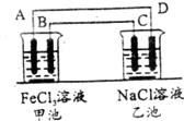 ,已知B电极质量不变,C、D为石墨电极,乙池中为200mL饱和NaCl溶液。回答下列问题: