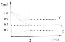 22.(4分)某温度时,在2L的容器中X、Y、Z三种气体的物质的量随着时间的变化曲线如下图所示,下图中数据分析完成下列问题: