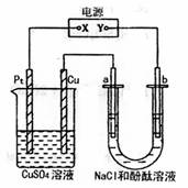 C.x是负极,y是正极,CuSO4溶液的pH 逐渐减小