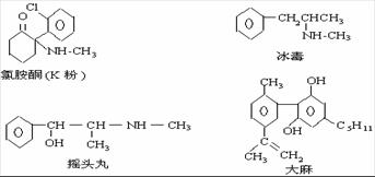 12.珍爱生命,远离毒品。以下是四种毒品的结构简式,下列有关说法正确的是 ( )![]()