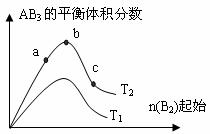 2AB3(g)化学平衡状态的影响,得到如下图所示的变化规律(图中T表示温度,n表示物质的量),根据如图可得出的判断结论正确的是 ( )