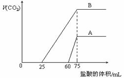 25.(共8分)取等物质的量浓度的NaOH溶液两份A和B,每份10 mL,分别向A、B中通入不等量的CO2,再继续向两溶液中逐滴加入0.1 mol·L-1的盐酸,标准状况下产生的CO2气体体积与所加的盐酸溶液体积之间的关系如图所示,试回答下列问题: